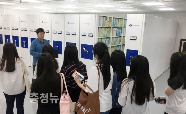 지난 5월 지족고등학교 학생들이 유성구 기록관을 견학하고 있다