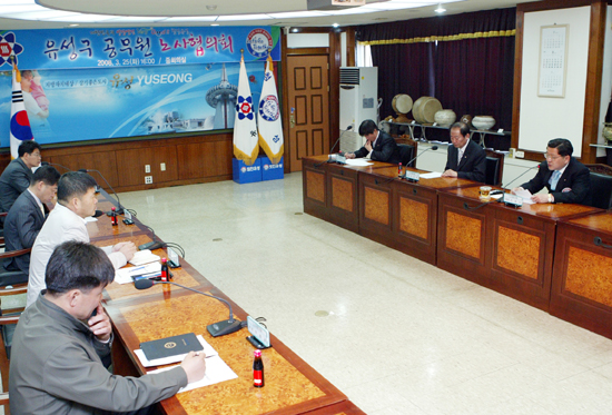 유성구는 25일 오후 4시 중회의실에서 진동규 유성구청장과 김동수 노조위원장 등 관계자 10여명이 참석한 가운데 공무원 노사협의회를 열고 공직사회의 발전과 동반자적 노사문화 조기정착을 위한 다양한 의견을 개진했다. ▲ 유성구청 노사협의회 저작권자 © 충청뉴스 무단전재 및 재배포 금지 한중섭 기자 다른기사 보기 기사가 마음에 드셨나요? 충청뉴스 좋은 기사 후원하기 1,000원 3,000원 5,000원 10,000원 30,000원 50,000원 직접입력 비회원 약관동의하기 ※ 소중한 후원금은 더 좋은 기사를 만드는데 쓰겠습니다.
