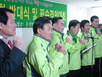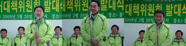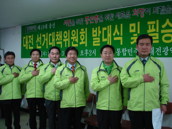 통합민주당 대전시당은 26일 대전 중구 대전시당에서 대전지역 6개 선거구 후보자와 염홍철 공동선대위원장 등 당 관계자 100여명이 참석한 가운데 제18대 국회의원 선거 선거대책위원회 발대식 및 필승결의대회를 가졌다.