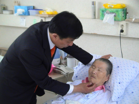 평화원 모친 문병 의식불명상태 투병중인 모친 찾아 기도로 필승결의