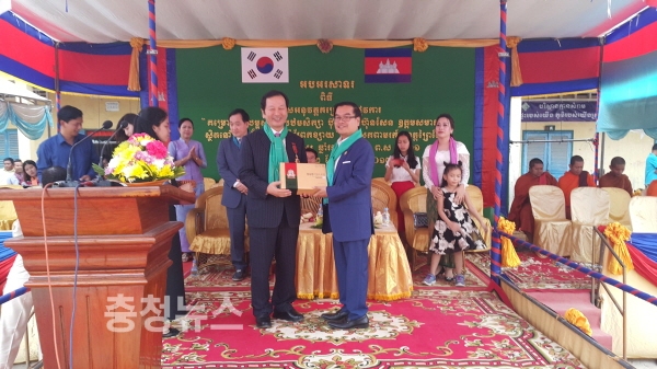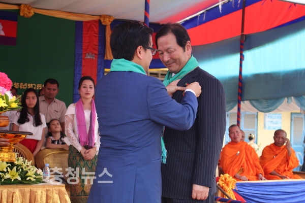 수여식은 캄보디아 프레이벵주((Prey Veng Province)에 있는 니크로엉 초등학교에 마련된 행사장에서 캄보디아 정부를 대표해 유크 버나(H.E. Youk Bunna) 행정부 차관 겸 왕립행정학교 총장이 국왕 명의의 훈장을 수여했다.