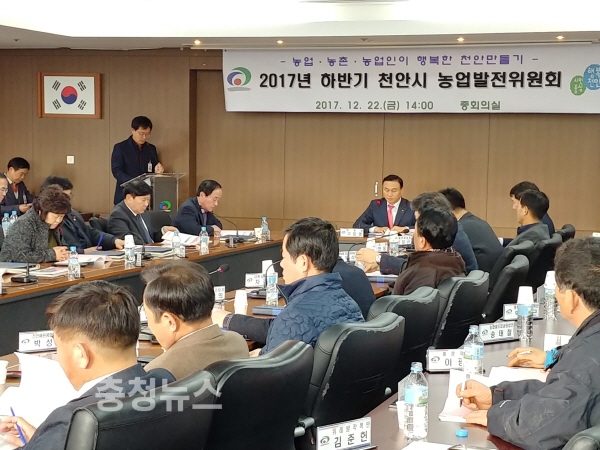 천안시는 지난 22일 시청 중회의실에서 농업의 현안과 미래에 대해 농업인·단체·행정이 함께 소통하는 ‘2017년 하반기 농업발전위원회’를 개최했다.