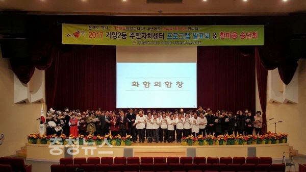 특히 마지막 순서인 ‘가양2동 화합의 합창’에서는 프로그램 회원 등 전 출연자들이 무대에 올라 함께 사랑으로(해바라기 곡)를 불러 달궈진 분위기는 최고조에 달했다.