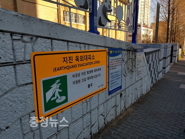 대전 중구(구청장 박용갑)는 지난 11월 포항에서 발생한 지진 관련 주민의 지진불감증 해소를 위해 지역 내 지진대피소 19개소에 안내표지판을 설치했다.