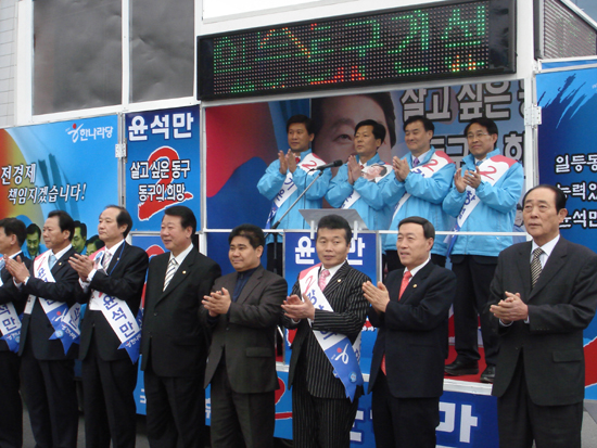 이날 윤석만 한나라당 동구 국회의원 후보는 "대전 경제발전과 잘사는 대전시를 원하는 대전시민의 한뜻이라고 생각한다며 대전역은 역 자체를 역무기능만이 아닌 복합시설로 개발하면서 철도 역사 브랜드화 하여 명품 복합역사로 건립해야 한다"고 촉구했다.