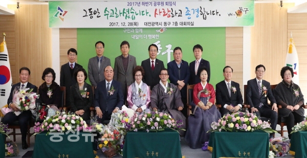 대전 동구(구청장 한현택)는 28일 구청 중회의실(식장산실)에서 2017년 하반기 공무원 퇴임행사를 가졌다.