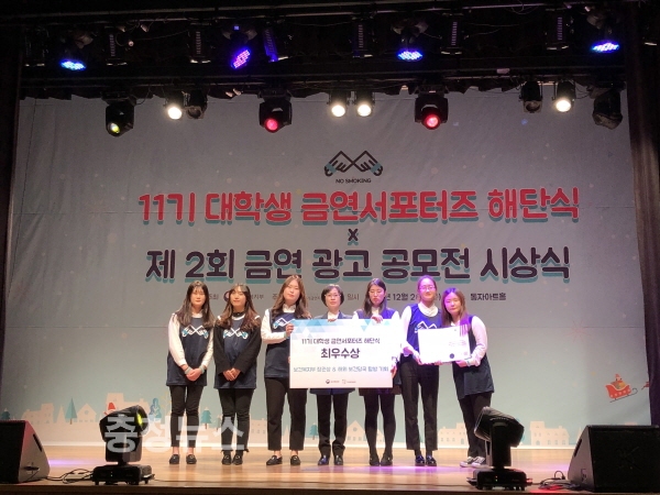 대전과학기술대학교(총장 김은기) 금연서포터즈팀이 한국건강증진개발원이 주최하고 보건복지부가 후원하는 전국 대학생 금연서포터즈 대회에서 최우수상을 수상했다.
