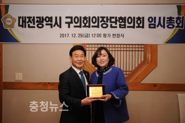 대전시 동구의회(의장 박선용)는 활발한 의정 활동으로 기초의회 발전에 기여한 공로로 강정규의원과 박민자의원이 대전광역시 구의회 의장단협의회장으로부터 ‘의정봉사상’을 수상했다고 29일 밝혔다.