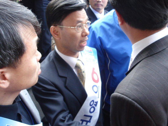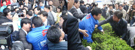 친박연대 한나라당 후보들과 충돌 사태가 악화되면서 자신의 승용차 대신 동구 윤석만 후보측 차량으로 긴급대피 하면서 위기를 모면했다.