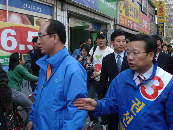 심 대표는 이에 앞서 거리유세에서는 "충청권이 더 이상 곁불을 쬐지 않을 것이며 새로운 불씨를 뜨겁게 당겨나가겠다는 것을 전국에 보여주자"며 " 대전.충청 24석을 모두 자유선진당에 몰아달라"고 지지를 당부했다.