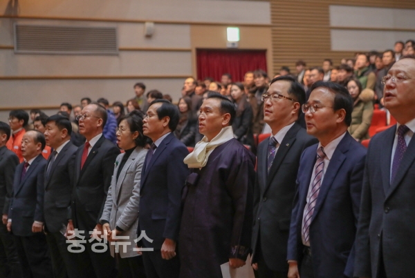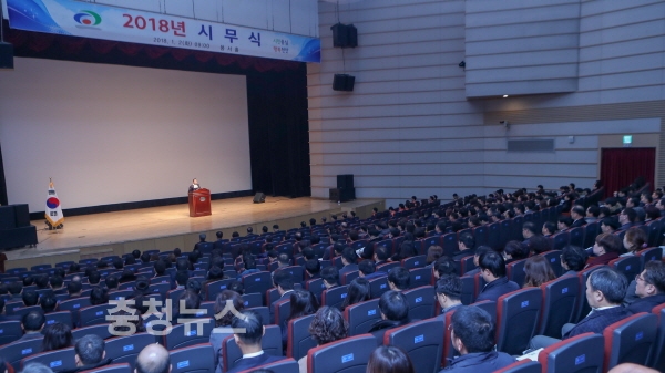 충남 천안시는 2일 시청 봉서홀에서 구본영 시장을 비롯한 전 직원이 참석한 가운데 ‘2018년 시무식’을 개최해 지난해를 돌아보고 새로운 시정방향을 제시하며 올해의 힘찬 출발을 다짐했다.