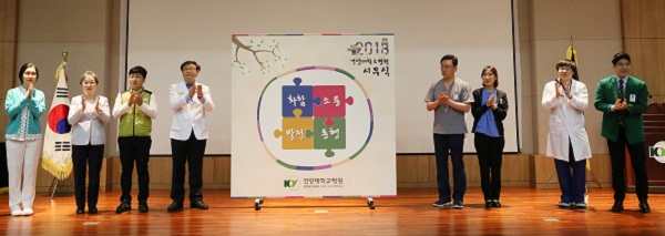 이날 희망찬 새 출발을 하자는 뜻에서 ‘화합·소통·발전·동행’이라는 슬로건을 내걸고 의사, 간호사, 의료기사, 행정직 대표 직원이 건양화합 퍼즐 맞추기 세레머니를 펼쳤다.