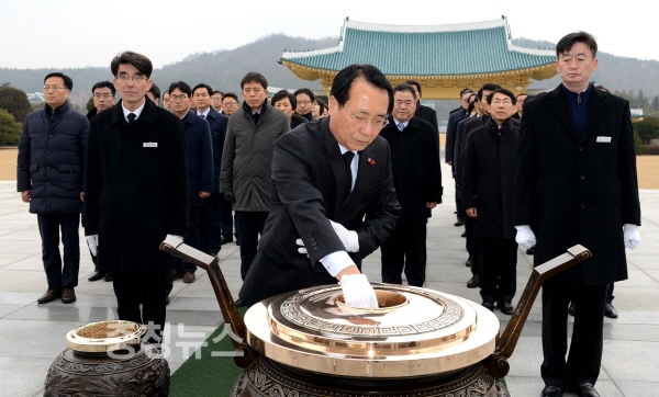 2일, 40여 명 간부 공무원과 함께 현충원 찾아