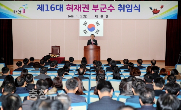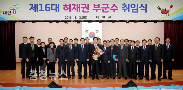 태안군은 지난 2일 군청 대강당서 공직자 300여 명이 참석한 가운데 제16대 허재권 부군수 취임식을 갖고 허 부군수의 새로운 출발을 격려했다.
