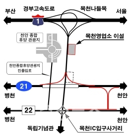 특히 고속도로 진출입로와 국도21호선 남부대로의 연결도로를 설치해 국도21호선을 이용하려는 운전자들이 목천읍 신계리까지 이동해야 하는 불편도 해소될 전망이다.