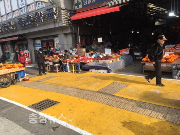 중앙시장과 역전시장 사이 대전로 양측 보도는 대형가로수인 버즘나무 뿌리생육으로 보도 노면이 들뜨고 파손되어 보행자 안전사고가 자주 발생하고 가로등이 노후 되어 누전으로 인한 안전사고 발생 우려가 있어 교체가 필요했다.