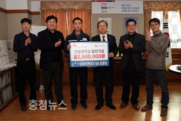 최훈민 학생은 “2014년 창업 후 한밭대 창업지원단에서 창업아이템사업화 지원사업, 한밭엔젤투자조합의 투자, 창업교육과 멘토링 등의 지원을 통해 회사의 성장과 안정적인 운영에 큰 도움을 받았다”며 “이 기부금이 한밭대 학생들을 위한 희망의 씨앗이 되기를 소망한다”고 말했다.