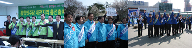 이밖에 대전지역은 대덕은 김창수 후보가 한나라당 이창섭 후보와 경합중이고,충남 논산 금산 계룡 이인제후보, 천안갑 한나라당 전용학 후보와 민주당 양승조 후보,천안을 한나라당 김호연 후보와 선진당 박상돈 후보가 경합중이다.