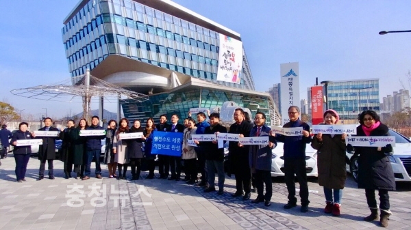 맹일관 대책위 상임대표는 “지방분권과 국가균형발전을 염원하는 국민들의 염원이자 충청도민의 숙원인 행정수도 개헌을 위한 결정적 국면이 다가오고 있다”며 “행정수도 개헌을 통해 지방과 수도권이 상생하는 새로운 대한민국의 초석을 다질 수 있도록 충청권 민관정의 협력과 단결을 호소한다”고 말했다.