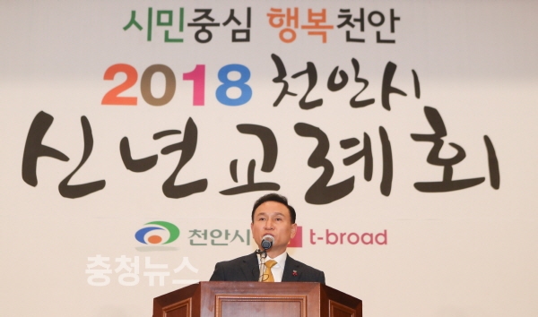 또, “황금개띠의 해인 무술년을 맞아 시민과 함께 가장 친근하고 믿음직한 시정을 구현해 나가고, 아이부터 어르신까지 모두가 살기 좋은 도시를 만들기 위해 노력하겠다”며 “더 큰 미래, 더 행복한 천안을 만들고 시민들이 바라는 희망의 그림을 하나하나 그려나가기 위해 정성을 다하겠다”고 전했다.