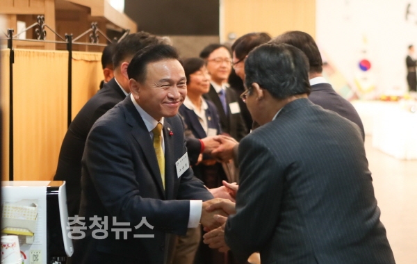 무술년을 맞이해 천안시의 각계각층 인사들이 신년 인사와 덕담을 나누고 화합의 자리를 갖는 ‘2018년 신년교례회’가 4일 신부동 소재 세종웨딩홀에서 열렸다.