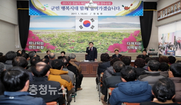 한 군수의 이번 읍·면 방문은 군수가 군민을 직접 찾아 소통하고 공감하는 현장행정 실천과 더불어 올해 군정운영 기조와 방향을 군민과 공유해 공감대를 얻고 민선6기의 순조로운 마무리를 도모하기 위한 것이다.