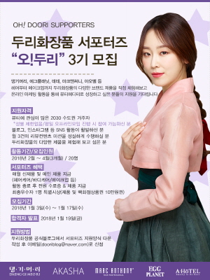 두리화장품, 공식 서포터즈 ‘오!두리’ 3기 모집