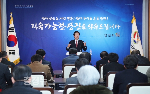 김홍장 당진시장이 4일 2018년 신년기자회견을 갖고 올해 시정운영계획을 발표했다.