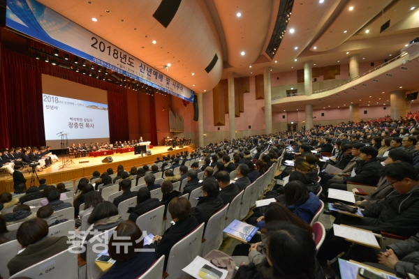 백석학원(백석대학교ㆍ백석문화대학교ㆍ백석예술대학교ㆍ백석대학교평생교육신학원, 설립자 장종현 박사)와 대한예수교장로회(대신) 총회는 5일 천안 백석대학교 백석홀 대강당에서 ‘2018년도 신년예배 및 시무식’을 개최했다.