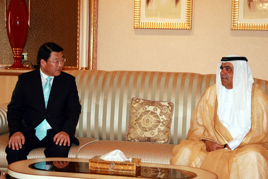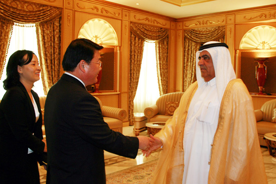 아랍에미리트 두바이에서 열리는 제5회 WTA(세계과학도시연합) 테크노마트에 참가중인 박성효 대전시장은 15일 두바이 왕궁을 방문해 UAE 함단 빈 라시드 알 막툼 재무산업장관을 만나 두바이와의 협력방안을 논의했다.