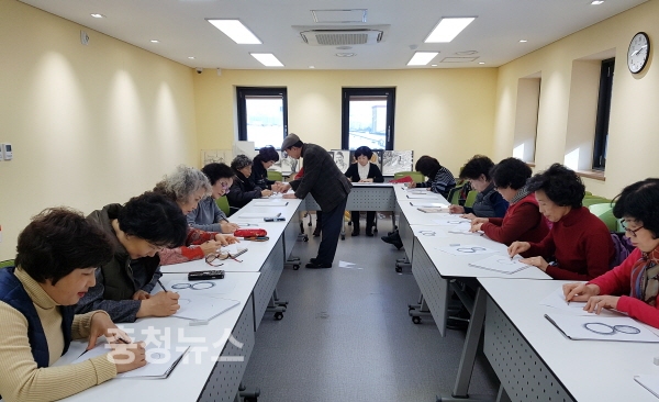 9일 진잠건강나눔센터에서 주민 재능기부로 진행되는 ‘내가 그린 초상화’ 동아리 활동이 이뤄지고 있다.