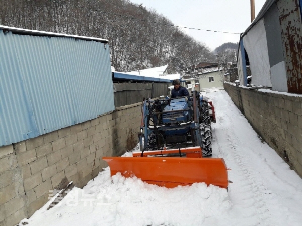 군에 따르면 주민참여예산위원회 제안사업 건의를 받아들여 비법정 도로 등 군청 제설장비 운행이 어려운 제설취약지역 마을에 트랙터에 부착해 사용 할 수 있는 트랙터용 제설기 보급을 추진했다.