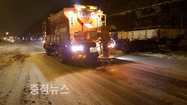 또 충청남도 종합건설사업소가 관리하는 지방도 제설작업에 어려움을 겪고 있음을 파악하고 염화칼슘, 천일염 등 제설자제를 지원하는 등 인접 시‧군 경계와 국도‧지방도 도로관리 기관과의 협조체계를 통한 제설작업을 진행했다.