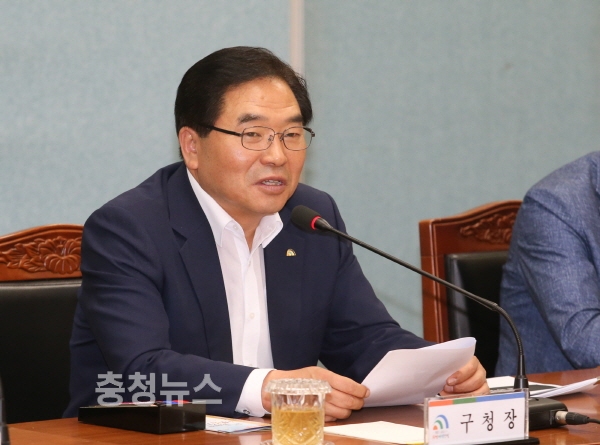 박수범 대덕구청장은 15일 오전 구청 중회의실에서 열린 주간업무회의에서 “‘천변도시고속화도로 무료화’와 ‘신탄진 시외버스 정류소 설치’가 지역현안으로 크게 대두되고 있다”며 “대전시와 관련 기관이 이 같은 현안에 대해 안일하게 대처하고 있는 문제에 대해 우리 공직자들은 적극적으로 대처해 문제 해결의 단초를 마련해야 한다”고 말했다.