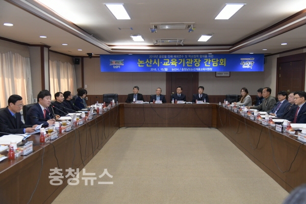 충남 논산시(시장 황명선)는 15일 상황실에서 논산계룡교육지원청 교육장을 비롯, 관내 학교장들이 참석한 가운데 2018 글로벌 인재 해외연수 추진 및 학교정책 협의를 위한 ‘논산시·교육기관장 간담회’를 개최했다.
