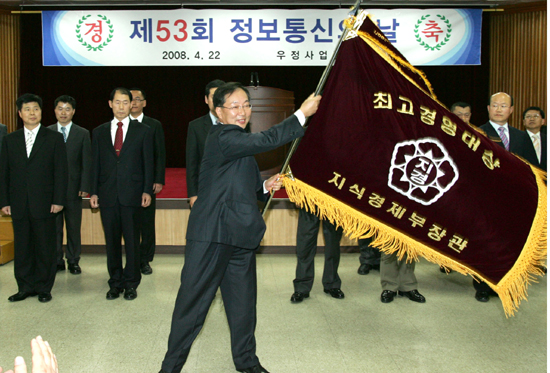 충청체신청(청장 이계순)이 지식경제부 우정사업본부에서 주관하는 '우정사업 경영평가'에서 전국 8개 체신청 중 '최고경영대상‘ 관서로 선정돼 22일 열린 제53회 정보통신의 날 기념식에서 수상기와 상패를 받았다.