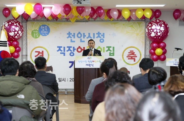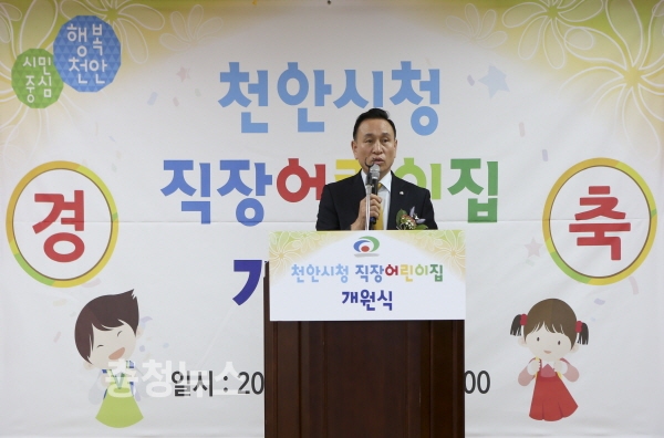 충남 천안시는 16일 학부모와 지역 보육관계자가 참석한 가운데 천안시청 직장어린이집 개원식을 개최했다.