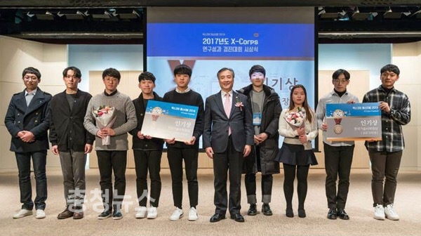 과학기술정보통신부가 주최해 지난 11일 경기도경제과학진흥원에서 열린 이 행사에는 X-Corps 사업에 참여하고 있는 전국 14개 대학 416개의 실전문제연구팀 중 1차 관문을 통과한 40개팀이 참가했으며 이 중 총 11개팀이 수상의 영예를 안았다.