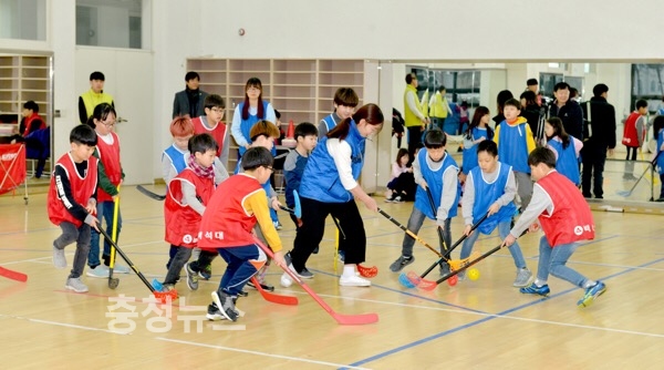 평창동계올림픽과 같은 주제로 진행되는 만큼 캠프에서 진행되는 프로그램들도 동계올림픽 종목들과 닮았다. ‘인간 컬링’과 ‘실내 바이애슬론’, ‘실내 하키’ 등이 그것.