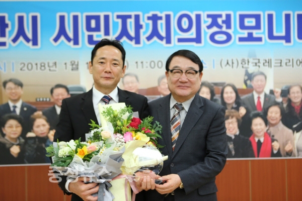 천안시 시민자치 의정모니터 협의회(이하 협의회)는 16일 이준용 천안시의원을 열심히 일하는 시의원 수상자로 선정하고 시상식을 가졌다.