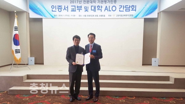 대전과학기술대학교(총장 김은기)가 17일 고등직업교육평가인증원이 실시한 2017년도 전문대학 기관평가인증에서 '고등직업교육품질 인증대학'으로 선정돼 인증서를 교부받았다.