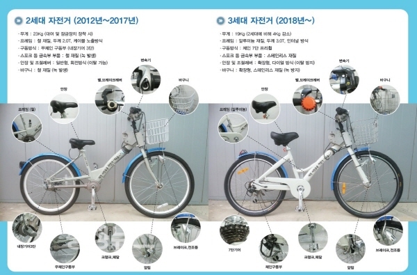 안장도 바뀌었다. 이용자 의견을 반영해 안장을 넓게 바꾸고 높낮이를 편리하게 조절할 수 있도록 다이얼 방식으로 전환했다. 바구니와 벨도 새로운 재질로 교체했다.