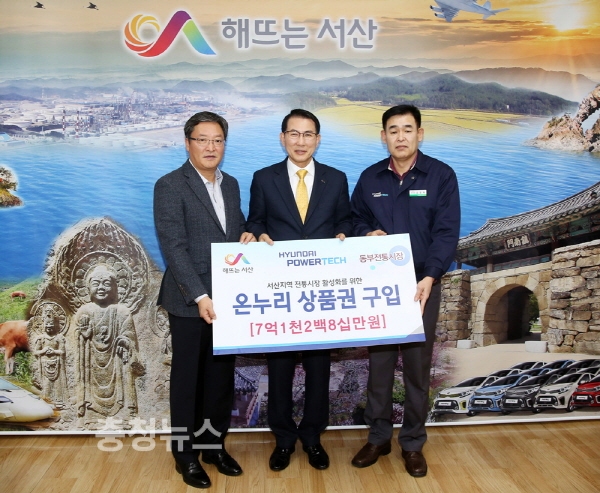 이번 협약으로 현대파워텍에서는 7억 1280만원 상당의 온누리 상품권을 구입하는 한편, 지역경제 활성화를 함께 노력하기로 했다.