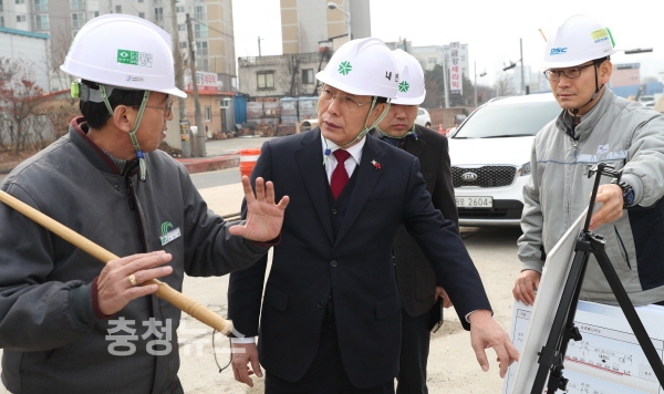 한현택 동구청장은 18일 홍도육교 지하화 공사 현장을 방문해 진행현황을 보고받고, 현장을 둘러보며 안전사고 예방과 차질 없는 사업추진을 당부했다.