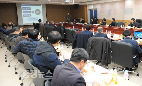 충남대가 18일 대학본부 별관에서 진윤수 대외협력부총장을 비롯한 60여명의 교직원이 참석한 가운데 미래 사회를 대비하기 위한 노력으로 진행되고 있는 제17회 Jump CNU포럼을 개최했다.