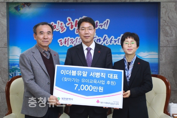 이날 오후 3시 30분 시청에서 개최된 기탁식에는 이재관 대전시장 권한대행과 후원자인 서병직 씨, 이희정 대전사회복지공동모금회 사무처장이 참석했다.
