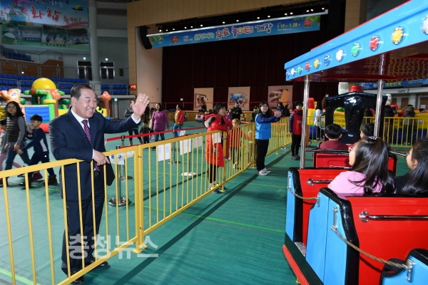 이번 무료 놀이터 개장은 군으로서는 처음 개최하는 것으로 아이들의 많은 참여를 유도하기 위해 많은 노력을 기울였다. 윤봉길체육관 무료 놀이터는 해피카·배틀킹, 패밀리기차, 에어바운스 6개, 키즈라이더 7개, 캐릭터 포토존, 트릭아트 등 인기있는 놀이시설물로 구성했다.