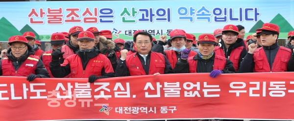 대전 동구(구청장 한현택)는 19일 세천근린공원에서 산불예방과 초동진화를 위한 산불 진화대 발대식을 가졌다.