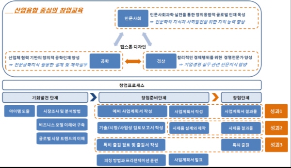 이 강좌에서는 공학 중심의 문제해결능력 향상 프로그램인 캡스톤 디자인을 창업과 접목하고, 경상-인문사회-디자인-공학계열 등 다양한 전공을 가진 학생들이 실전형 창업교육을 이수할 수 있도록 했다.