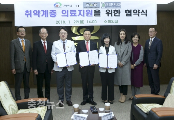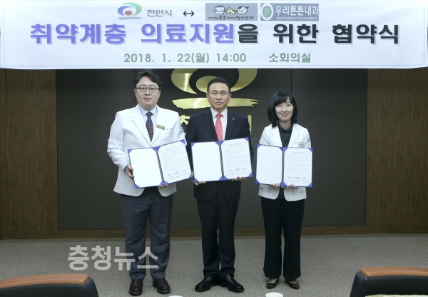 충남 천안시는 22일 시청 소회의실에서 아이튼튼소아·청소년과(병원장 김범수)·우리튼튼내과(병원장 김민주)와 취약계층 의료지원을 위한 업무협약(MOU)을 맺었다.